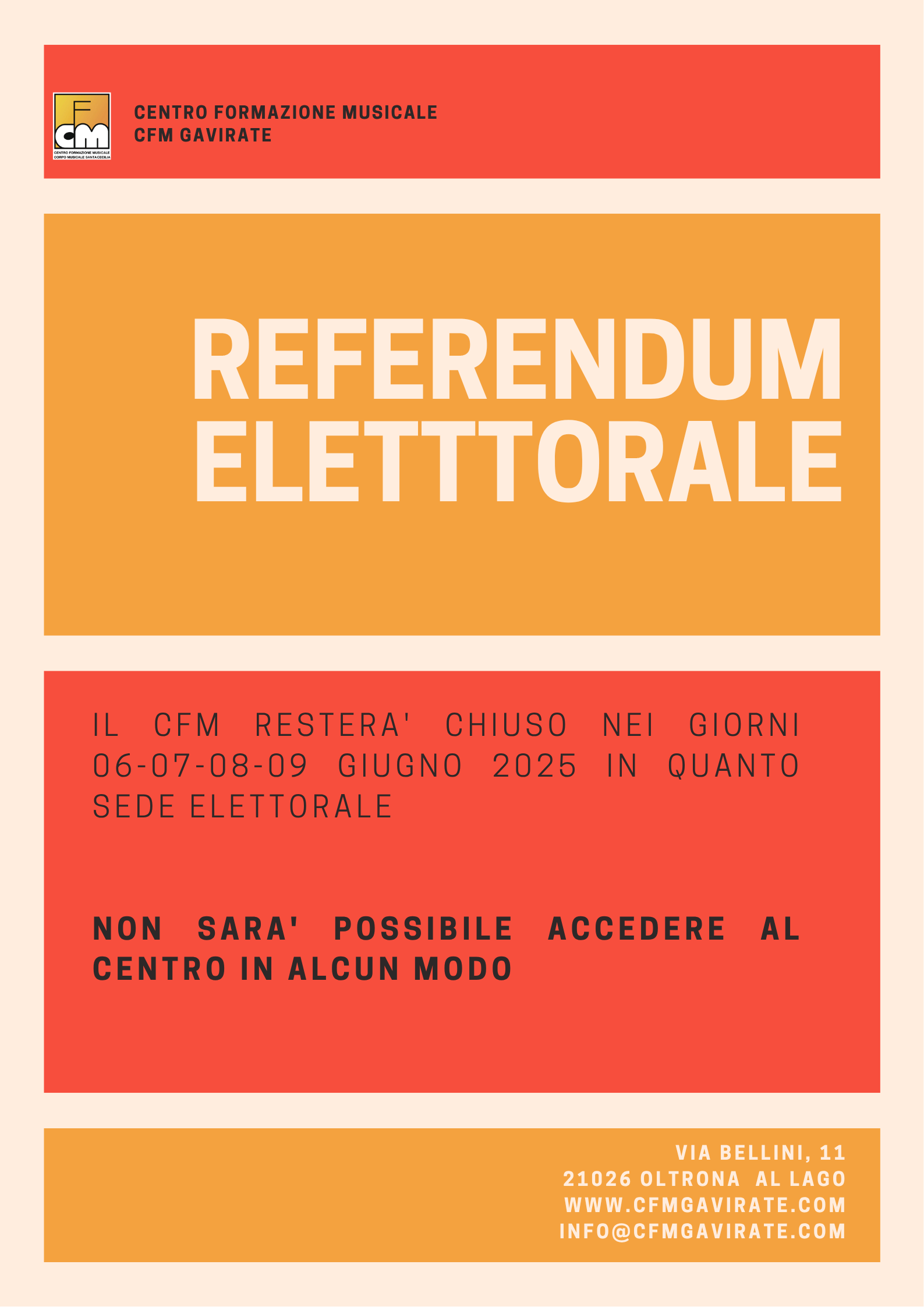 - CFMOPEN 2025Due settimane dedicate alle prove gratuite di Strumento Fin da ora è possibile prenotare un giorno e un orario tra il 01 e il 13 settembre per provare gratuitamente e conoscere i nostri insegnanti 0332737560 oppure emilio.vezzini@cfmgavirate.com 07 Settembre Giornata Open con presentazione dei corsi e della nostra scuola, aperitivo tutti insieme, prove aperte a… Leggi tutto: CFMOPEN 2025